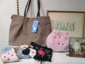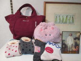 無地トート¥1950、 モンスターポーチ ¥690 紺ロゴトートバッグ¥1700 MIXマフラー¥1950