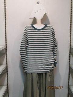 シャツ袖P/O¥2900 メロー細ボーダーT¥2200 テーパードパンツ¥2850 |