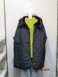 ファー衿ブルゾン¥5200 モックネックニット¥2200 チェックワイドパンツ¥3100 |