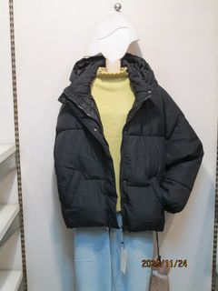 フェークダウンコート¥5480 メローニット¥1500 裏起毛デニムワイドパンツ¥2650 ![]() |
