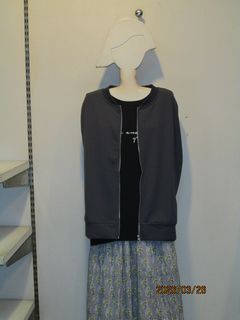 袖切替カーデ¥2350 リブニット¥1500 花柄プリーツスカート¥2680 |